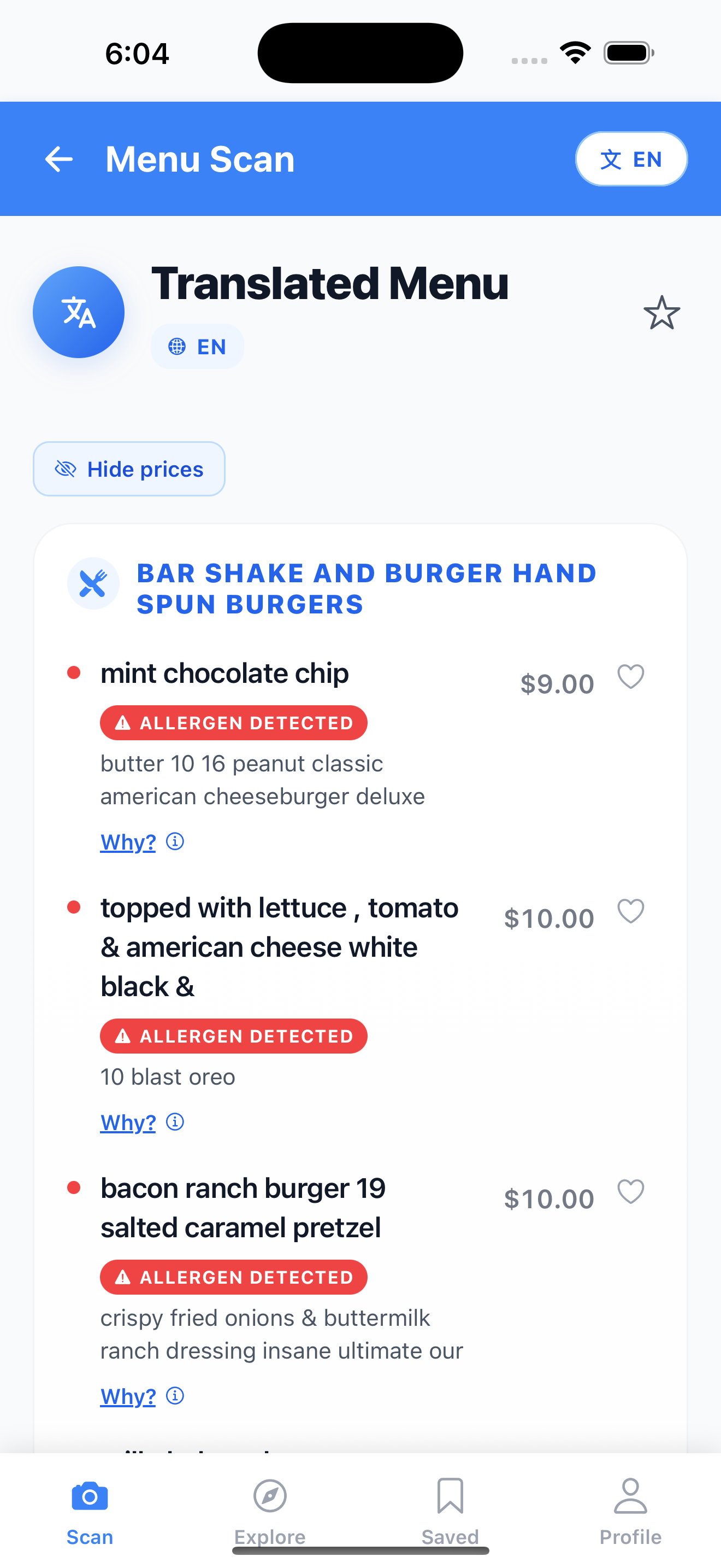 Point your camera at any menu and get allergen analysis in under 3 seconds.